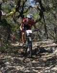 The weather is starting to finally feel like spring and the temperatures couldn’t be better! Despite all the rain that has kept our trails closed, there is plenty of road to be ridden! Last weekend was the fourth race of the TMBRA State Championship Series, the Cat Claw Classic at Solavaca Ranch in Glen Rose, TX. Now does that name sound familiar?!? If you’ve read our “About Us” page then you know that happens to be the place that started it all! With all the rain that we mentioned above, the race was up in the air with a high chance of getting rained out and possibly being cancelled. Not only that, but Carlos and I got some sort of stomach bug in the middle of last week. He got it MUCH worse than I did with almost 103 degree fever, hot sweats, body aches and just all around crappiness. It was TERRIBLE! He even lost 5 lbs from his average 165 lbs weight! I was well enough to go to work the next day and when I came home he had the nerve to tell me he was going to race the local Wednesday Night Irving Crit! I told him he had lost his mind and the only reason he could say that was because he was lying on the couch not having to use an ounce of energy! LOL The second he stood up to walk around he quickly said, “You’re right. I don’t think I’m racing tonight.” But from now on you can expect mid-week race reports because the local crit series has begun! I didn’t pre-register for Solavaca because despite the stomach bug, I also didn’t know how my elbow was going to feel since I hadn’t been on my mountain bike since my crash at Mellow Johnny’s. We went ahead and drove out there Saturday to check out the trail conditions since we are pretty familiar with the trail and know that the several creek crossings were going to make things pretty slippery. They had about 8 inches of water in them. Considering the circumstances the trail was in tip-top shape thanks to all the work that Mack put into it. My elbow felt pretty good for most of the ride. It was only towards the end that my stitches felt like they were going to rip apart, but I knew a little bit of Aleve would help. For this one we decided not to camp since Glen Rose is practically a local race. (It’s only about 90 miles away.) We had an 8:30am start time which meant we had to wake up at around 4:30am. Compared to our normal Monday-Friday this is actually sleeping in an extra hour for us! : )