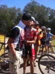 Carlos broke the golden rule which is not to make any changes to your bike right before a race. The Specialized Demo Truck was at the ranch on Saturday and he hopped on one of their bikes and really liked the way the stem was set up on it. That night he made some changes on his own bike and said, “tomorrow’s race is a test.” He positioned himself all the way in the back on the starting line. As I was standing behind him I even thought to myself, “why in the world is he all the way in the back?” But I knew he would have his reasons. His group had 28 total and he ended up in 16th place. He absolutely loved the way the bike handled and said to me that this race was the confidence booster that he needed. He felt great both physically and mentally during the race. Accomplishing both of these things in a race isn’t always easy. We have definitely realized that this is where experience shines over fitness. We both understand that it is going to just take time for us to catch up in this way to some of those that have been racing for several years. The one thing that we really want to focus on is to have fun and learn to ride like we train! Riding and racing is supposed to be fun, and every once in a while you have to take a step back from being so serious about your training and racing and just give yourself a break. We both definitely used this race as a break for some breathing room just to see how it would all turn out to JUST HAVE FUN! There were no time-splits, no hard passes, and no added pressure! Just what we needed!