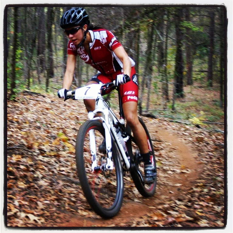 The start was the same as the day before, on a park road, then turn onto another park road, haul butt for a little bit and then turn into the trail on a loop called EZ Loop. I caught my pedal, and took off hard. After making the first turn I looked over my shoulder and I already had a gap! I went into EZ loop and kept the same pace as our warmup. I was so excited to know in the back of my head I was going to get to ride loop “A” three times!!! Just like Waco, I was really feeling it! I never knew what kind of gap I had, I just rode hard. I finished the race in 1st with a nine minute lead and ended the Fall Cup in 1st Overall for the Pro Women!